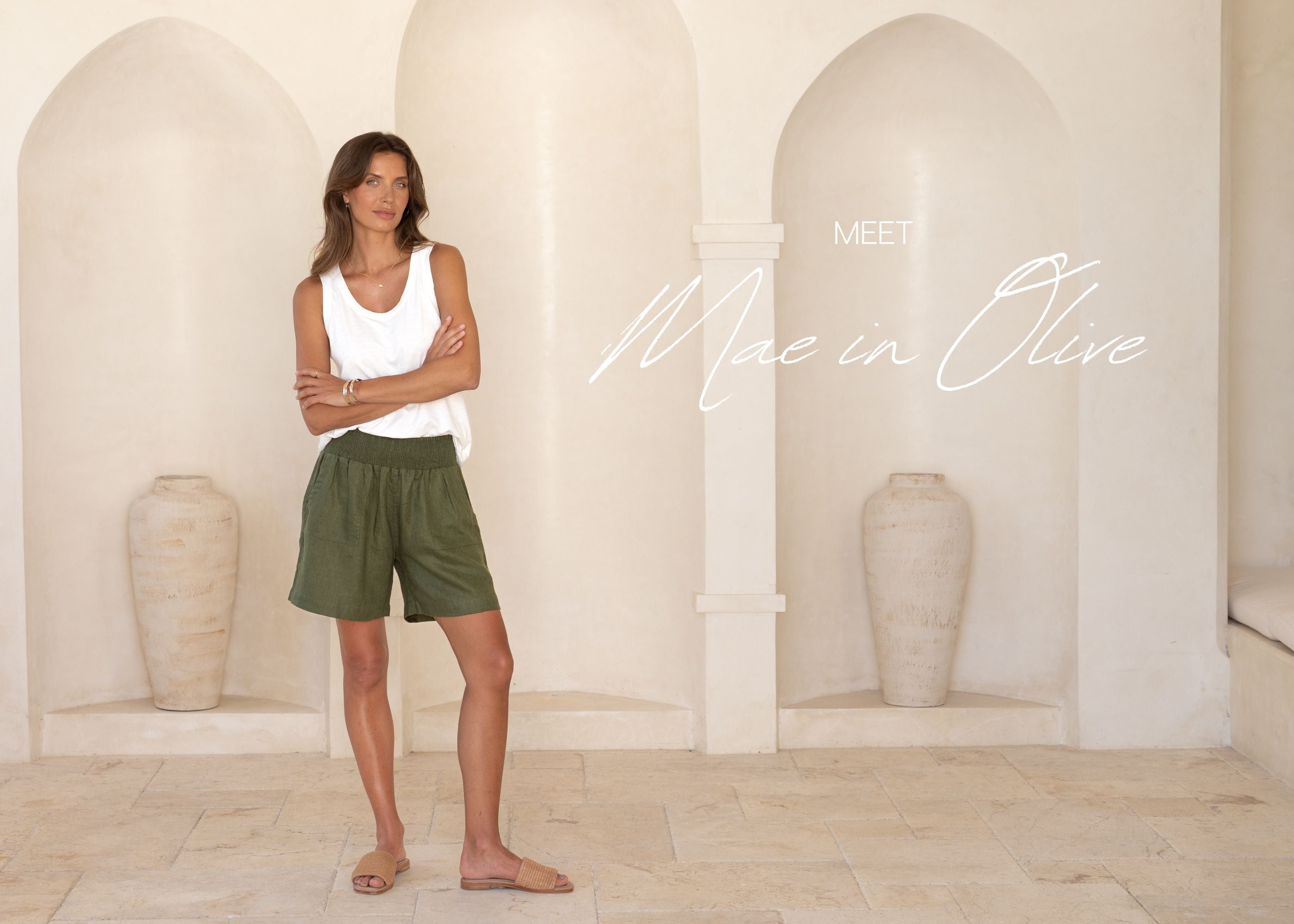 At our heart lies timeworn linen - textured, soulful, and rich in character. Our best-selling Mae Linen Shorts are made to be lived in and shaped over time, now reimagined in an earthy olive hue that wears effortlessly and travels with ease.