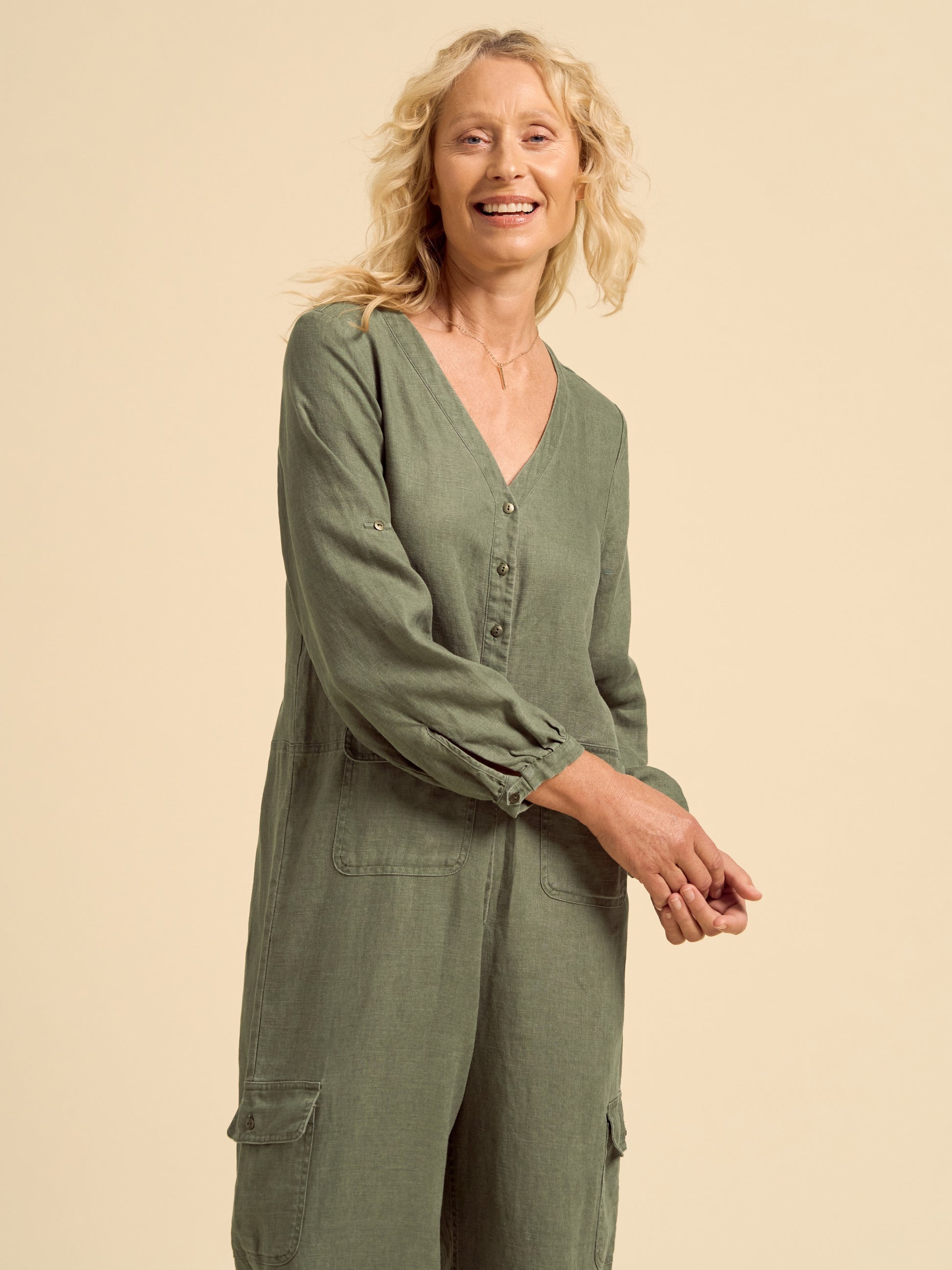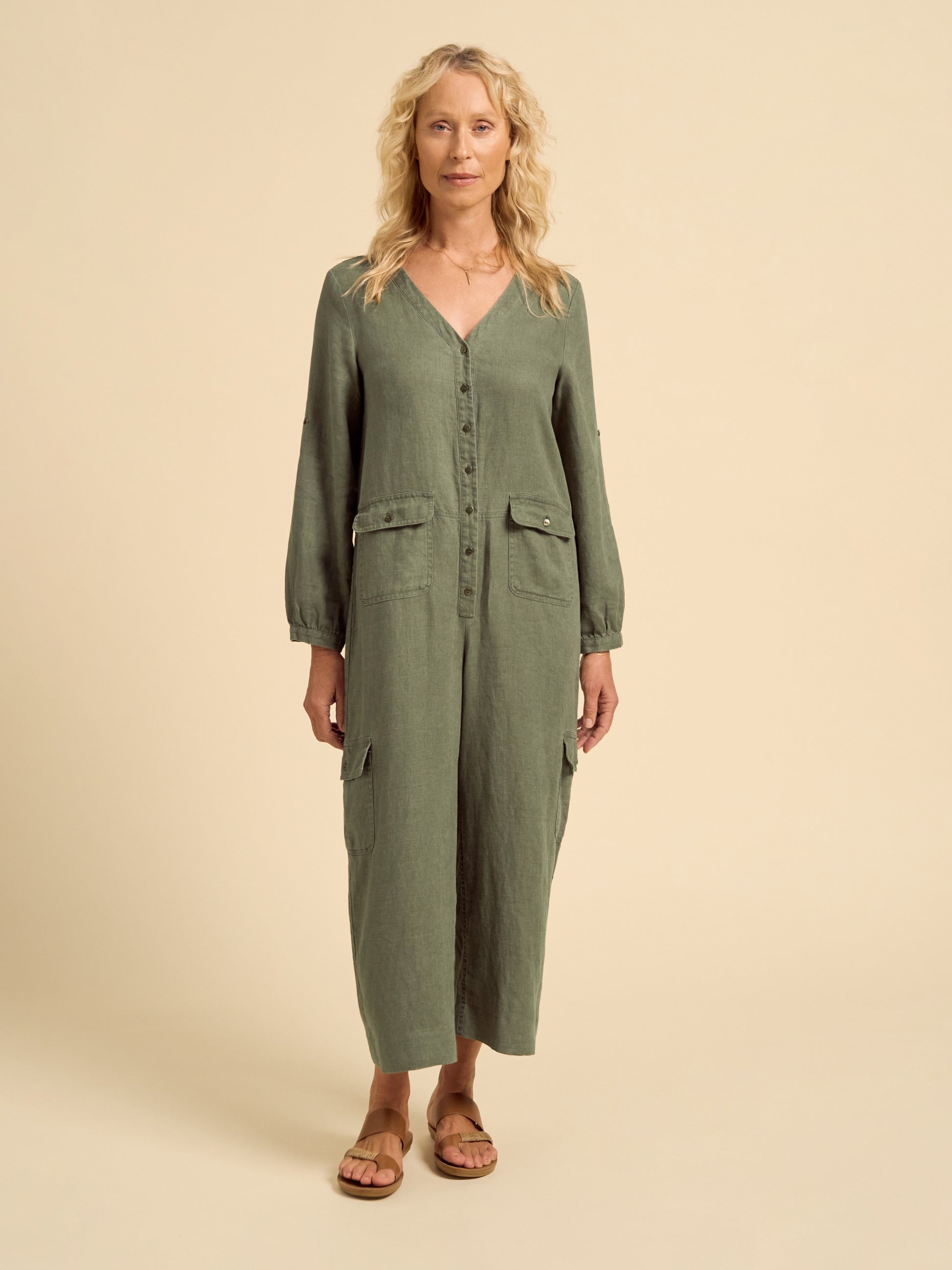 Mara Linen Jumpsuit Olive