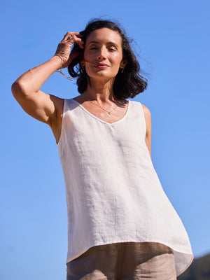 Consider pairing linen cami tops and tees with denim jeans, linen shorts, or pants for a casual and effortless look. Tuck a linen top into a flowy linen skirt or high-waisted trousers for added elegance.